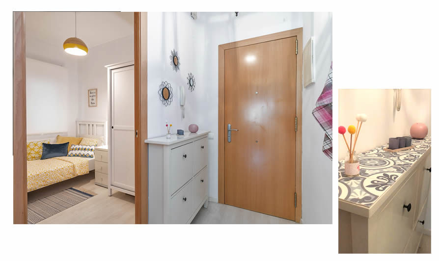 El recibidor como bien indica el nombre recibe, da la entrada y es la carta de presentación de tu casa, así que, aunque sea pequeño y de paso debe presentarse cuidado. Teníamos un zapatero que encajaba perfectamente en los espacios que teníamos, pero la tapa estaba rallada y daba una imagen descuidada. ¿Había que cambiarlo? Era una opción, ¿pero porque no idear una solución? Se colocó un vinilo hidráulico que li dio personalidad al mueble y lo hizo único.