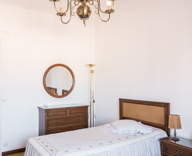 La habitación que aparece a continuación tenía humedades y desperfectos en la pared además de estar llena de muebles que no hacían más que ocupar espacio visual. Arreglamos las humedades, se pintó y se retiró aquel mueble enorme que no dejaba ver el potencial de la habitación, era una habitación amplia con espacio para un armario, una cama, una mesita de noche y un escritorio. El Home Staging lo que te pretende demostrar son los espacios reales de los que dispone la estancia, con la alfombra que coloqué en el suelo (90*60 cm) se puede ver que cabe perfectamente un escritorio.