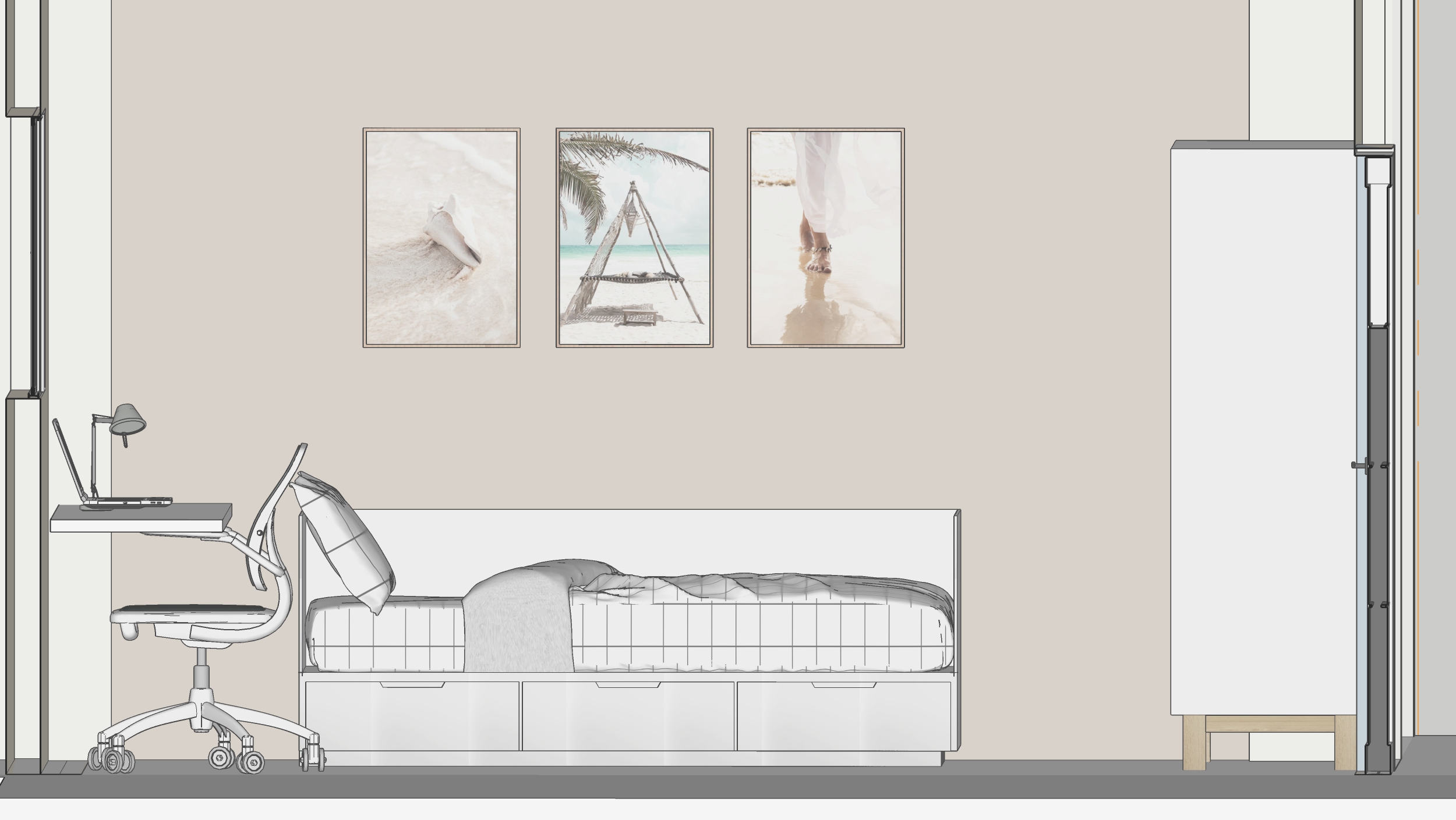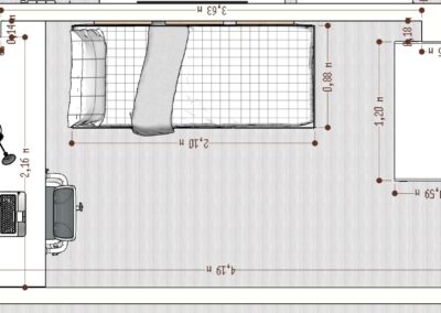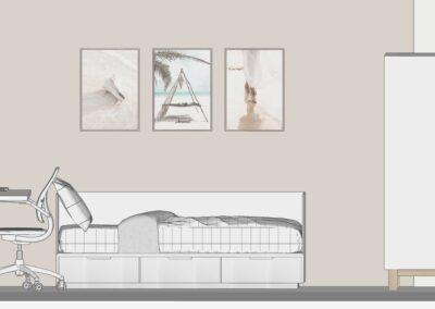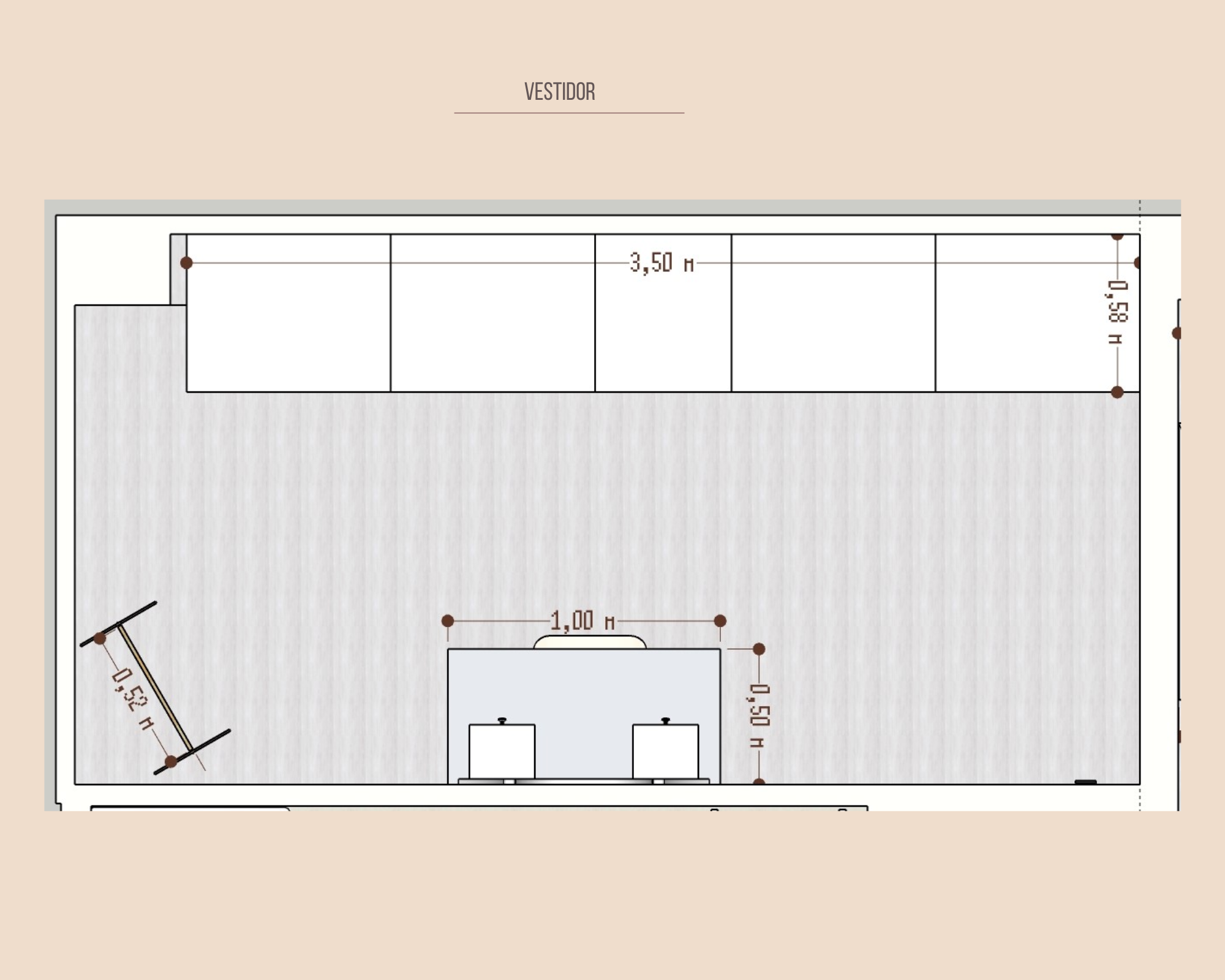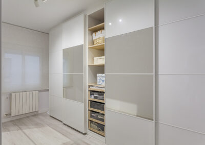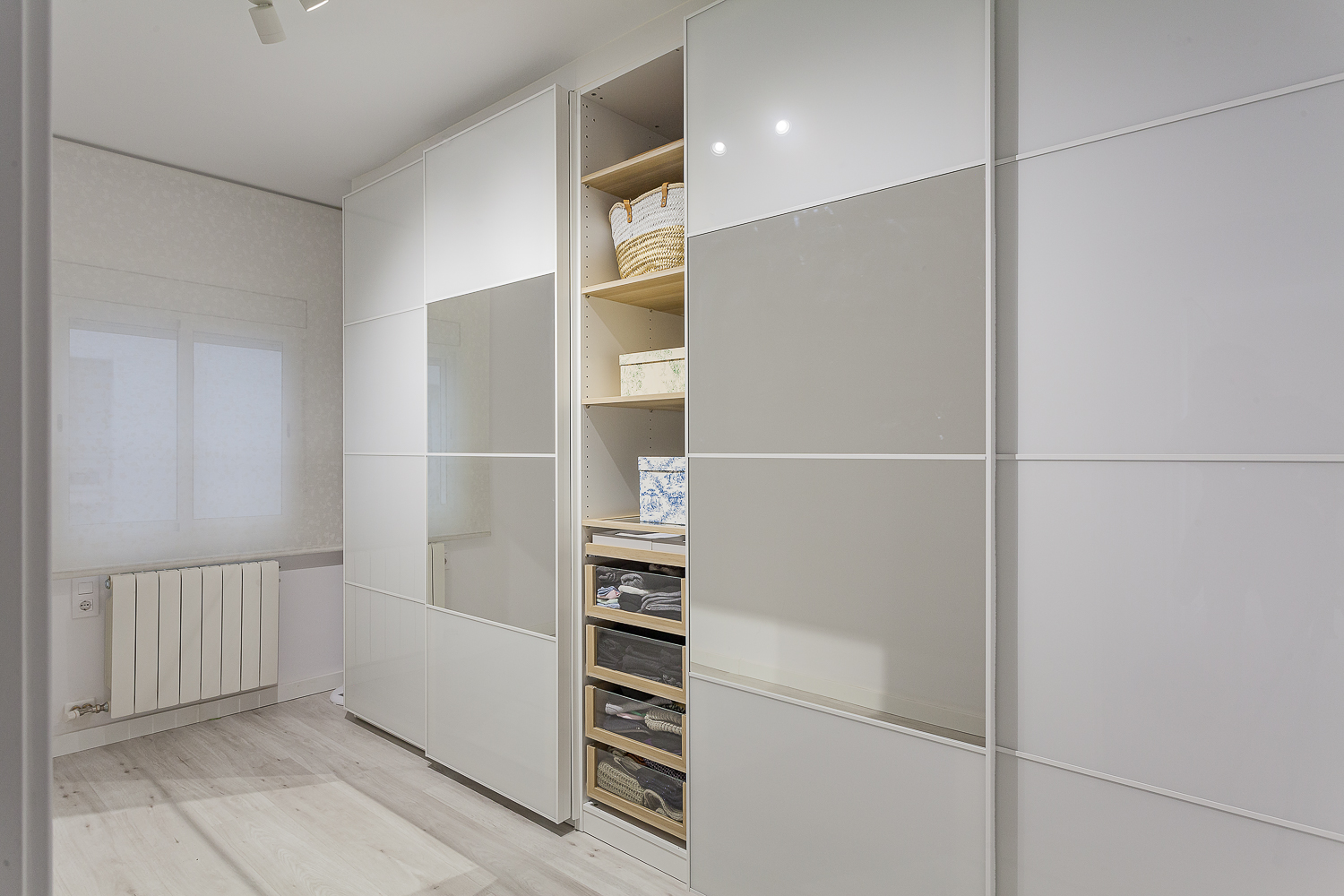 La última habitación se destinó a un vestidor contiguo a la habitación principal ocupando toda la pared.