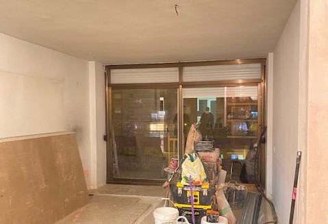 Las columnas que habían a ambos lados se resolvieron con un cortinero con luz integrada y al otro lado con un muro para encastrar el radiador.